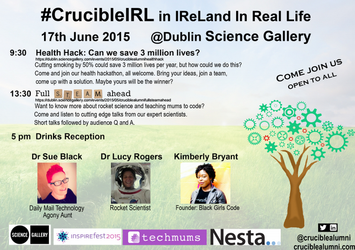 Afternoon session: Full STEAM ahead – what is the future for STEAM? Our keynote speakers tell us stories from dinosaurs in space to getting mums coding. Don’t miss it! Sign up here via the Science Gallery This event will be streamed live on the internet. Please watch and join in via Twitter #CrucibleIRL.